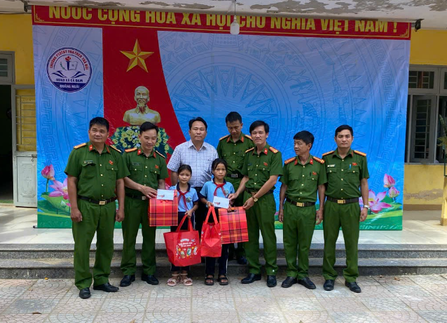 Công an xã Cà Đam tặng quà cho học sinh có hoàn cảnh khó khăn, chăm ngoan, học tập giỏi