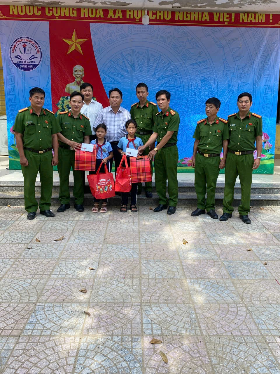 Cong an xã Cà Đam trao tặng 2 xuất quà cho em Hồ Thị Quỳnh – lớp 5A và em Hồ Thị Trà My – lớp 5A. Đây là 2 em học sinh giỏi, chăm ngoan và có hoàn cảnh đặc biệt khó khăn trên địa bàn. Chương trình thể hiện sự quan tâm sâu sắc của lực lượng Công an đối với thế hệ măng non của địa phương, là niềm khích lệ lớn để các em tiếp tục nỗ lực trong học tập và rèn luyện đạo đức.